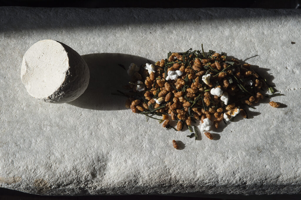 L’ispirazione deriva dal yutō, piatto conclusivo del menù kaiseki della cerimonia del tè giapponese: riso cotto e leggermente tostato servito con sencha. Da qui nasce l’idea di mescolare tè verde e riso tostato per creare una bevanda armoniosa.