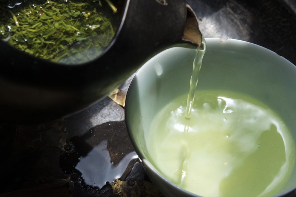Alla base della catena montuosa vengono coltivati all’aperto Sencha che, pur non essendo ombreggiati come il Gyokuro, ne richiamano il carattere caldo, morbido e avvolgente.